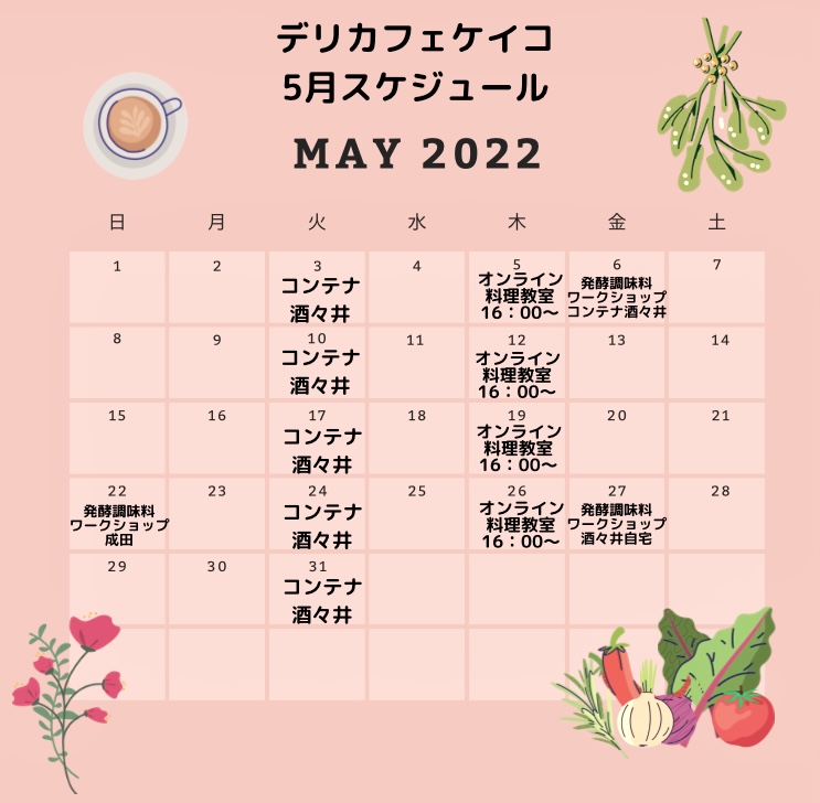 5月10日(火) デリカフェケイコ 11:30 OPENです。