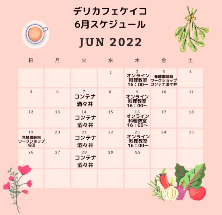 6月28日(火) デリカフェケイコ 11:30 OPENです。