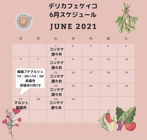 6/15 (火)千葉県民の日 デリカフェケイコ 11:30 OPENです。