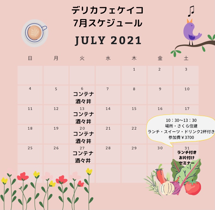 7/20(火) デリカフェケイコ 11:30 OPENです。