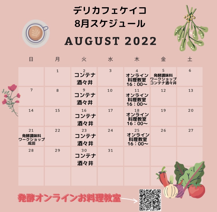 ❁8月9日(火)腸活発酵メニュー テイクアウトカフェ酒々井