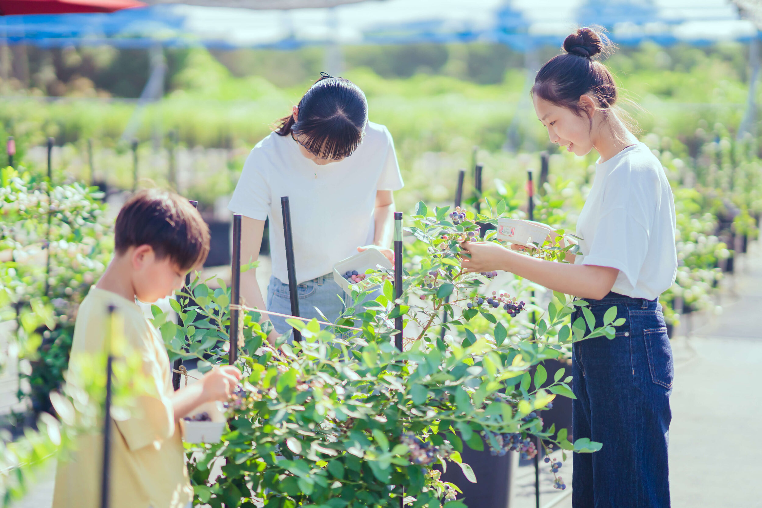 約5000坪の自然豊かな環境で、ブルーベリー狩り、直売所、ガラスハウス、