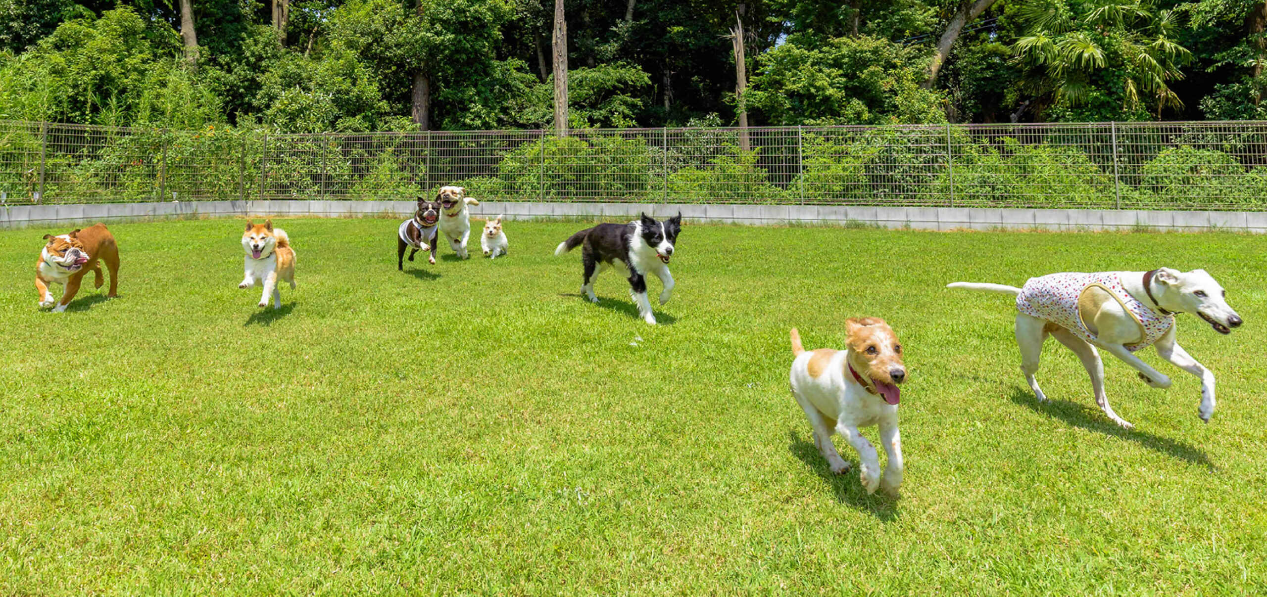小型犬から大型犬まで毎日、元気いっぱい楽しく遊んでいます。